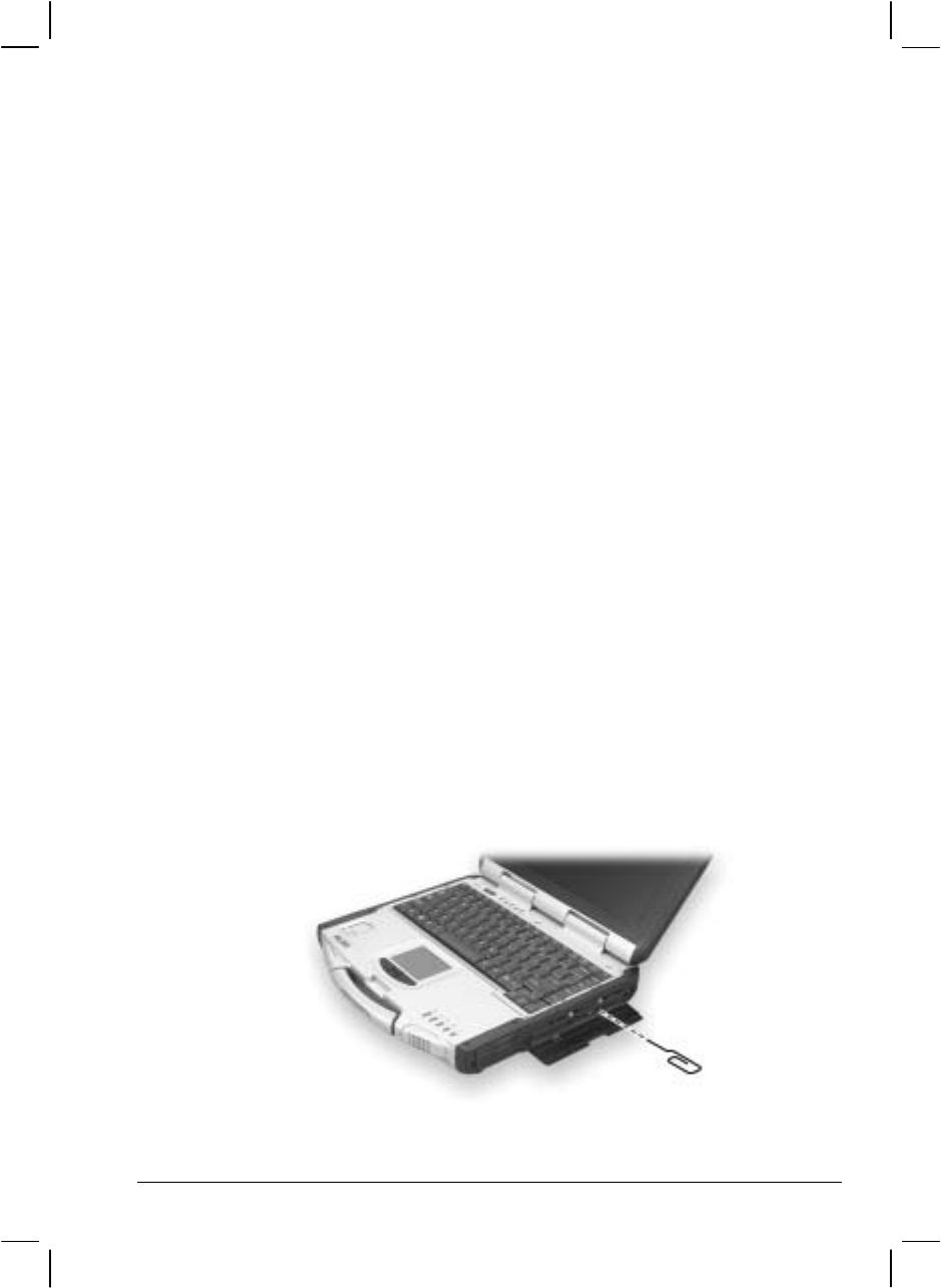 2. Insert a small rod, such as a straightened paperclip, into the drive’s