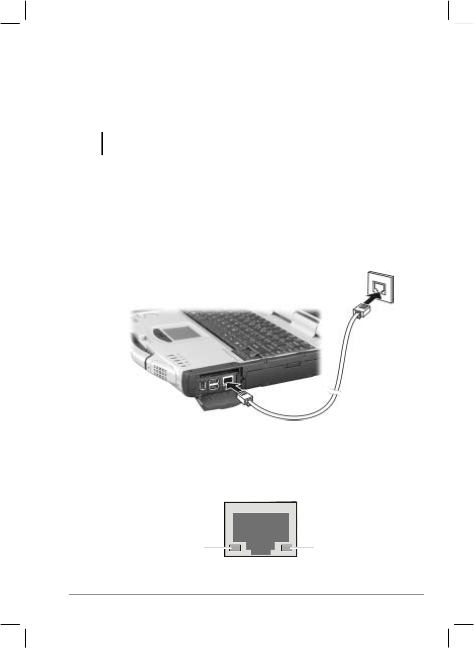 LAN cable to the RJ-45 connector on the computer and the other end to