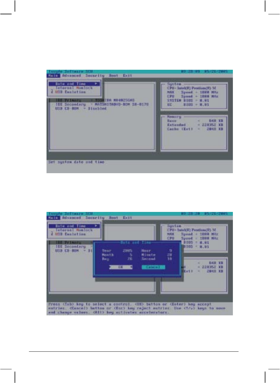 Sets the system time (Hour, Minute, Second) and date (Month, Day,