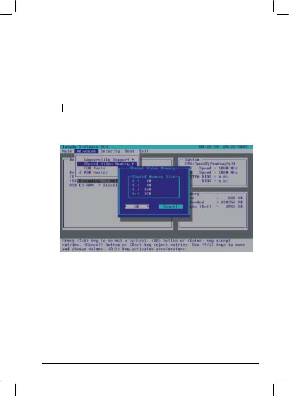 Sets the shared memory size of the video controller. The options are 4M,