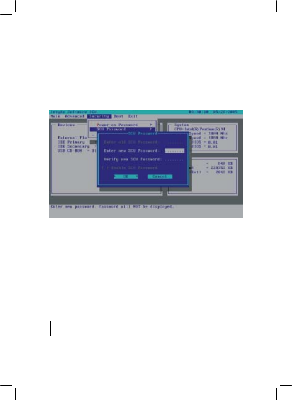 and pressing Enter. If the Enable SCU Password sub-item is enabled, the