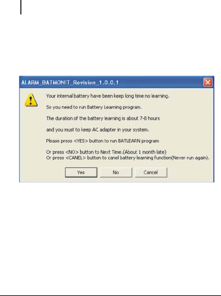 Click No if you do not wish to run the Battery Learning program’s