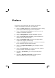 Preface This manual contains information that will help you operate the computer. It is divided into 8 chapters and 2 appendices. Chapter 1, Getting Started, takes you through the process of setting up the computer and identifying its external components. Chapter 2, Operating Your Computer, tells you how to use the computer’s components and features. Chapter 3, Managing Power, provides information on power. Chapter 4, Expanding Your Computer, provides information on installing and using peripheral devices.