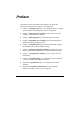 Preface This manual contains information that will help you operate the computer. It is divided into 8 chapters and 2 appendices. z Chapter 1, Getting Started, takes you through the process of setting up the computer and identifying its external components. z Chapter 2, Operating Your Computer, tells you how to use the computer’s components and features. z Chapter 3, Managing Power, provides information on power.