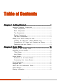 Table of Contents Chapter 1 Getting Started .................................................. .................................................. 1 Identifying Hardware Components ........................................ 1 Front Components ........................................................ 1 Back Components ........................................................ 3 Top Components .......................................................... 4 Bottom Components ............................................
