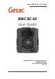 Getac BWC BC-03 User Guide Chapter 0: Revision History Getac BWC BC-03 User Guide Title Rev Date V1.0 2018/08/30 V1.1 2018/12/05 V1.2 2019/01/23 V1.3 2019/12/25 V1.4 2020/01/30 R1.1 Description Initiation version.