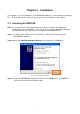 Chapter 2 Installation This chapter covers the installation of the WB01GS Adapter for your Notebook or Desktop PC. The following sections will assist you with proper installation of the Adapter. 2-1. Installing the WB01GS Note: If your system has other third party wireless drivers installed, we suggest you disable them before beginning. You can do this by going to Hardware Manager from Windows Control Panel and click ‘disable’ on the WLAN driver.