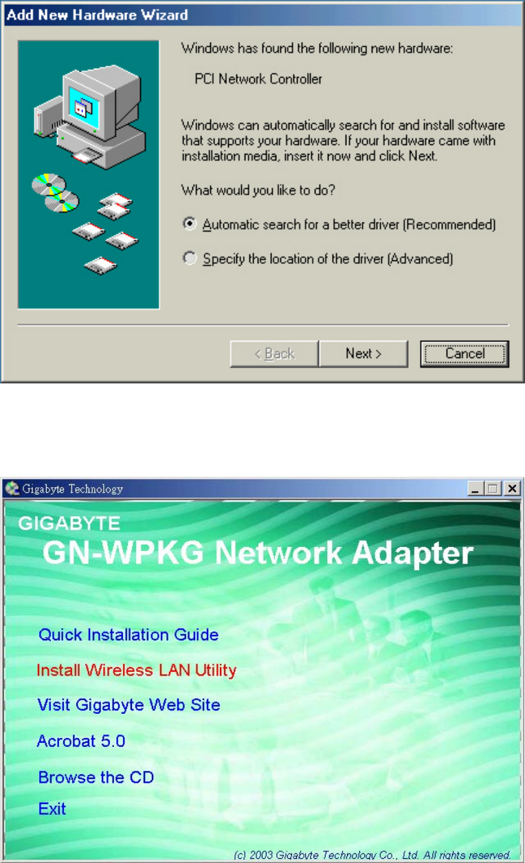 Insert the installation CD into the CD-ROM drive. The following window will pop