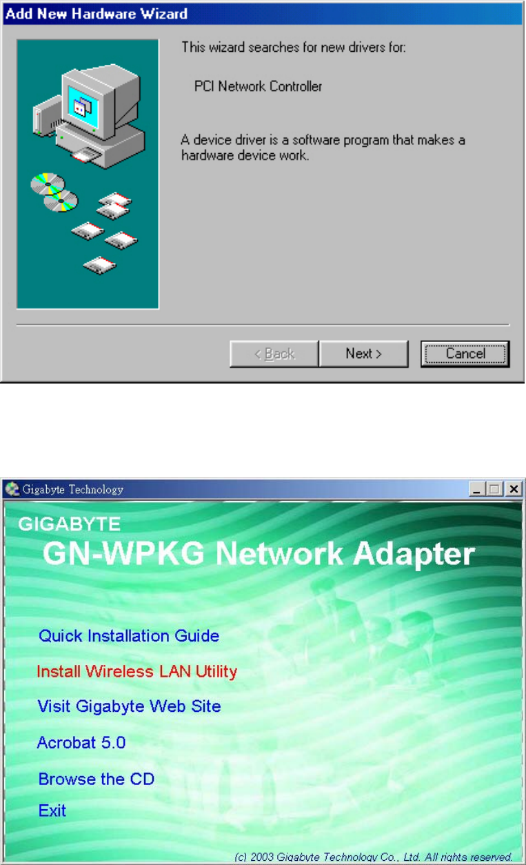 Insert the installation CD into the CD-ROM drive. The following window will pop