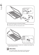 English 2 2 3 1 Connect the the power cord to the AC adapter. Connect the AC adapter to the DC-in jack on the right side of the netbook. 3 Connect the power cord to the power outlet. 1 2 1 ! Lift up the rear panel to open your netbook and press the power button to turn on. Attention Your computer takes a few minutes for the first startup. No action is required until the setup window appears.