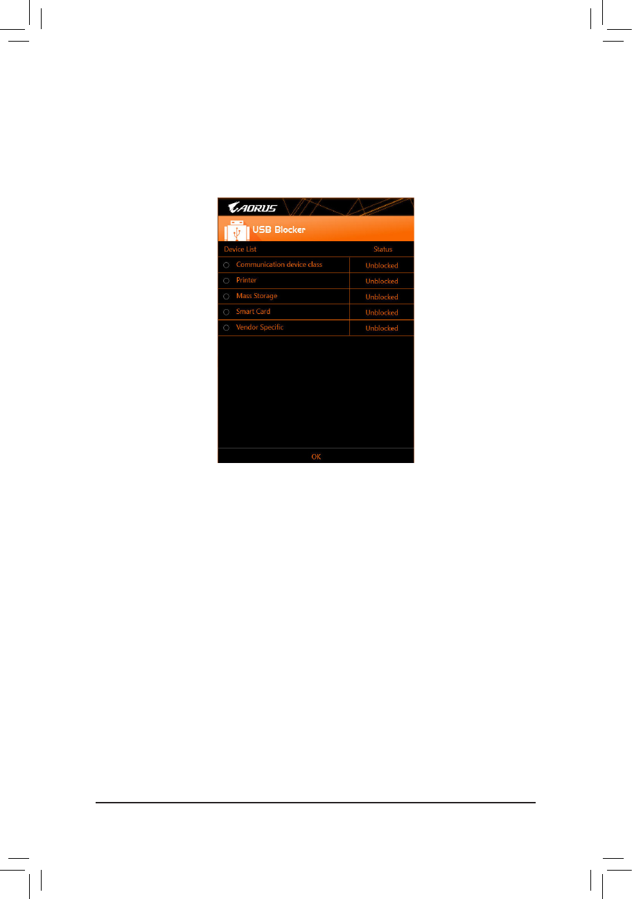 GIGABYTE USB Blocker provides you with an easy-to-use interface that allows you to block certain USB device