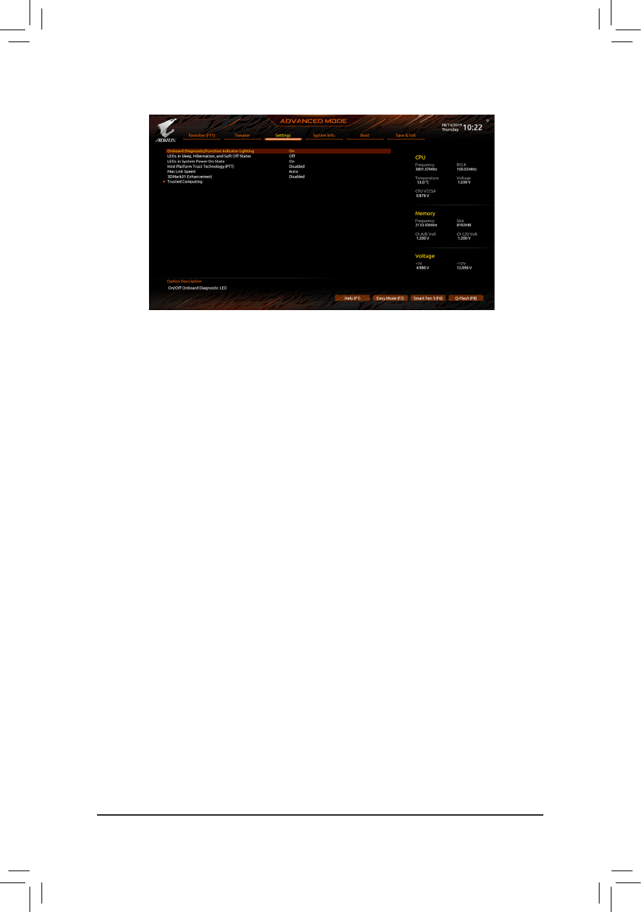 Allows you to enable or disable the LED lighting of the motherboard debug LEDs and onboard buttons
