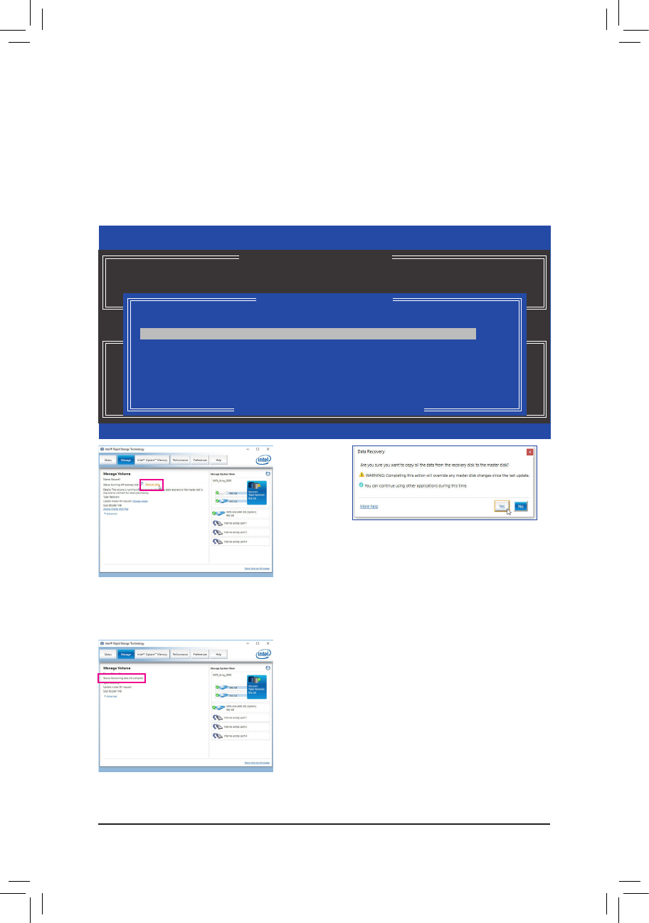 Select 4. Recovery Volume Options in the MAIN MENU of the Intel