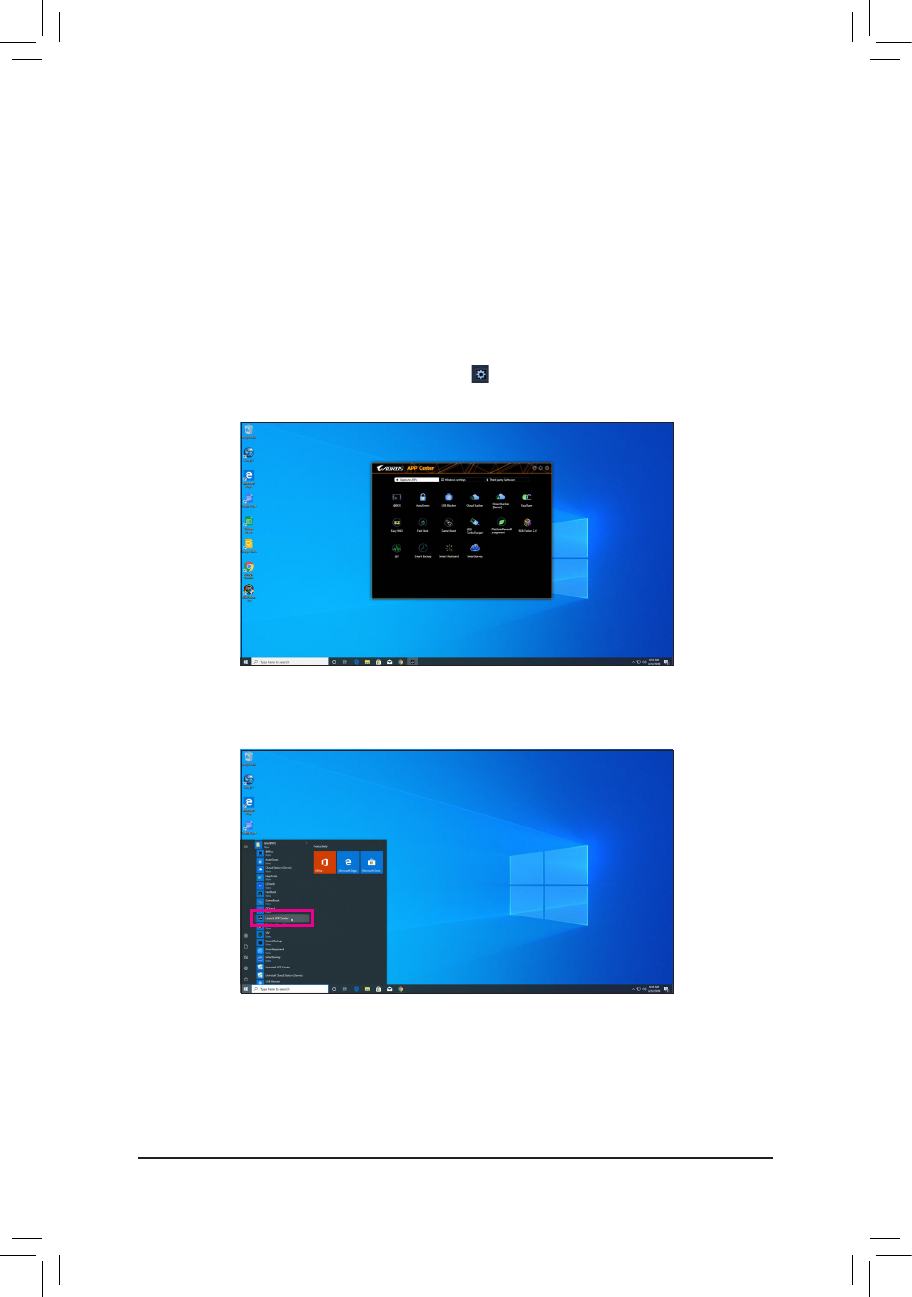 to easily launch all GIGABYTE apps installed on your system, check related updates online, and download the