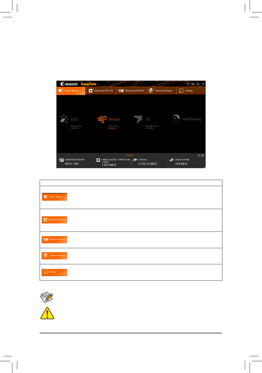 GIGABYTE'sEasyTuneisasimpleandeasy-to-useinterfacethatallowsuserstone-tunetheirsystemsettings