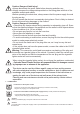 • Si le câble de branchement est endommagé, il faut le remplacer par un autre du même type et aux mêmes caractéristiques • Ne jamais toucher les câbles sans gaine avec les mains nues, surtout pour la marche avec un réseau d’alimentation en courant alternatif. Attention: ne pas connecter jamais le deux alimentations (ou prevue) au même temps, pour èviter d’endommager le produit / vèhicule / accessoires. Attention: Danger de mort! • Débrancher le câble de branchement avant le nettoyage et après chaque emploi.
