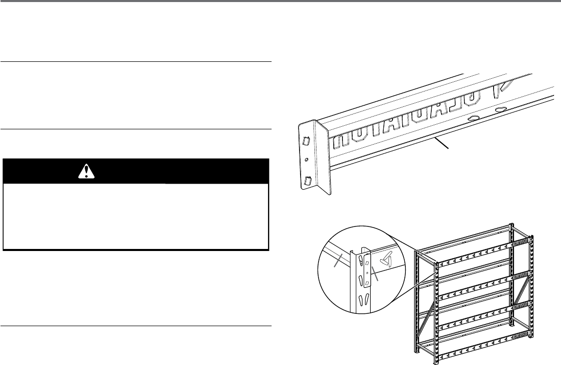 NOTE: Use two people to assemble shelving and to move it.