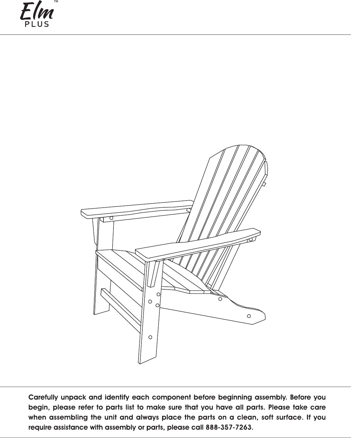 Elm Plus, LLC Assembly Instruction TAN / RED / GREY FAUX WOOD ADIRONDACK CHAIR