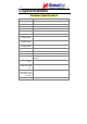 TR-206 page 10 3 Specifications Hardware Specifications GSM Module: GSM 850/900/1800/1900 MHz,GPRS class 10 GPS Chipset: High sensitivity GPS chipset Frequency: L1, 1575.42 MHz C/A code: 1.023 MHz chip rate Channels: 66 channels Antenna Type: Default Datum: Omni-directional GPS antenna WGS-84 Operation Temperature: -20 ° to 60 ° C Charging Temperature: 0 ° to 45 ° C Storage Temperature: -20 ° to 75 ° C Humidity: Dimension: 5% to 95% Non-condensing 84.5 mm(L) x 42.2 mm(W) x 17.