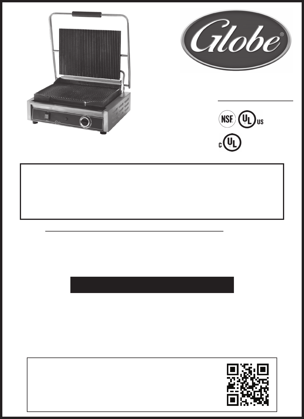 Instruction Manual for the Globe Electric Countertop Panini Sandwich Grill