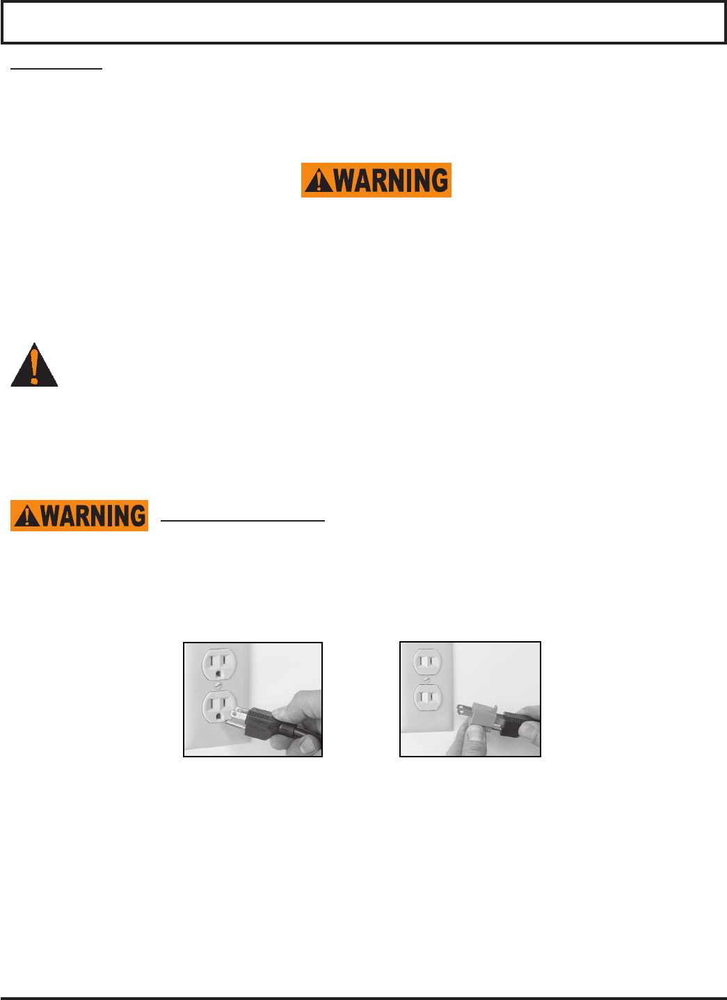 PLUG IS CONNECTED MUST BE PROPERLY GROUNDED. IF THE RECEPTACLE IS NOT THE PROPER