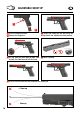 ADJUSTABLE SHOOT UP 1. 2. 1. 2. Press the magazine catch. Remove the magazine. 4. P ull the slide lock lever down on both sides and pull the slide forwards off the frame. 6. Push in the slide from the front and cock the airsoft gun. + Shoot up - Shoot up 10 3. To cock the airsoft gun pull the slide to the end and push the slide back to front position. 5. Adjust Shootup.