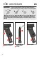 SHOOT UP EINSTELLEN 1. 2. Magazinhalter drücken. Magazin entnehmen. 3. Z iehen Sie den Schlitten zurück und bringen ihn wieder nach vorn. 4. Z erlegehebel auf beiden Seiten runterdrücken, gleichzeitig den Schlitten nach vorne abziehen. 5. Shootup einstellen. 6. Den Schlitten von vorne aufschieben und die Airsoft Waffe durchladen. 1. 2.