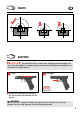 SIGHTS SHOOTING • You and others with you must wear shooting glasses to protect your eyes. If you need optical or reading glasses, you must wear safety glasses intended for use with optical or reading glasses. 1. Cock 2. Pull trigger FIRE 1. T o cock the airsoft gun pull the slide to the end and push the slide back to front position. NOTICE • When all the BBs have been fired, the slide will stay in the rear position. Press the slide stop lever to let the slide jump forward.