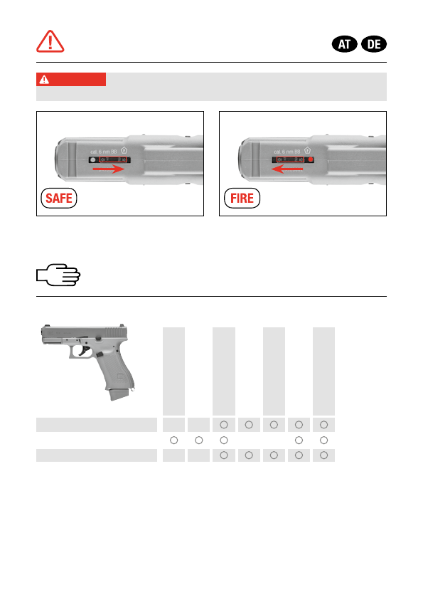 • Hantieren Sie nur mit der Airsoft Waffe, wenn diese gesichert ist.
