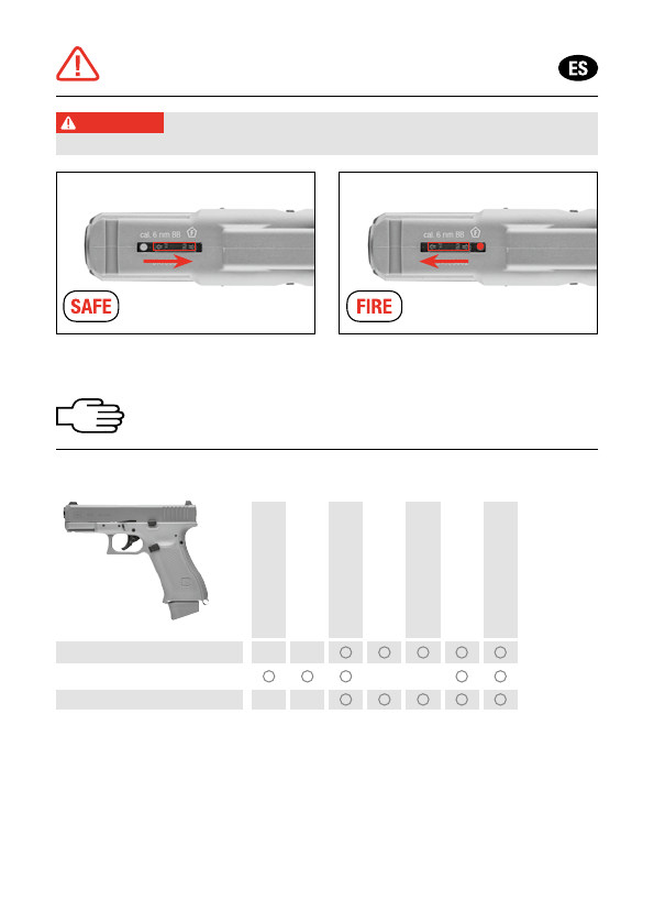 • Manipule la arma de Airsoft sólo cuando esté asegurada.