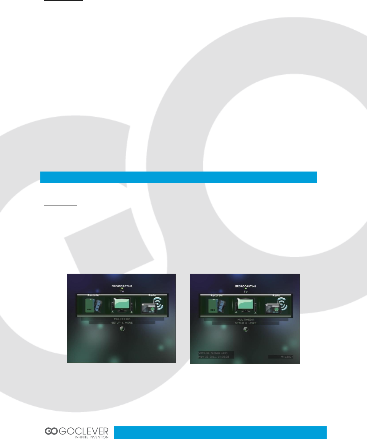 (2) Press <info> button to display the version information of STB.