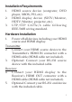 Installation Requirements 1. 2. 3. HDMI source device (computer, DVD player, XBOX, PS3, etc). HDMI display device (SDTV/Monitor, HDTV/Monitor, projector, etc.). UTP/STP CAT5e/6 cable following IEEE-568B wiring standard. Hardware Installation 1. Power off all devices including your HDMI source and HDMI display. Transmitter 2. Connect your HDMI source device to the Transmitter's HDMI IN connector with a HDMI cable (HDMI cable not included). 3.