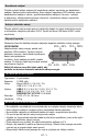 • Ne hagyja a készüléket zárt kocsiban. Erős fény és magas hőmérséklet a készülék károsodását okozhatja. • Tartsa a készüléket távol a gyerekektől. • Ne tegyen a készülékbe semmilyen tárgyat, ellenkező esetben rövidzárlatot, vagy a készülék károsodását okozhatja. • Kérjük töltse fel a készüléket minden harmadik hónapban az elem élettartamának megtartása érdekében.