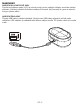 CZ PŘÍSLUŠENSTVÍ Špunty, USB nabíjecí kabel, nabíjecí obal NÁKRES ZAŘÍZENÍ 1) Dotyková plocha 2) Nabíjecí rozhraní 3) Indikátor baterie nabíjecího obalu ZAPNUTÍ & PÁROVÁNÍ Možnost 1: Automaticky & Párování Se sluchátky v obalu a otevřeným víkem aktivujete zapnutí. Vytáhněte sluchátkovou sadu a vyčkejte zhruba 5 vteřin dokud se nespáruje LEVÉ & PRAVÉ sluchátko. Po úspěšném spárování sluchátek, bliká PRAVÉ sluchátko modře a červeně.