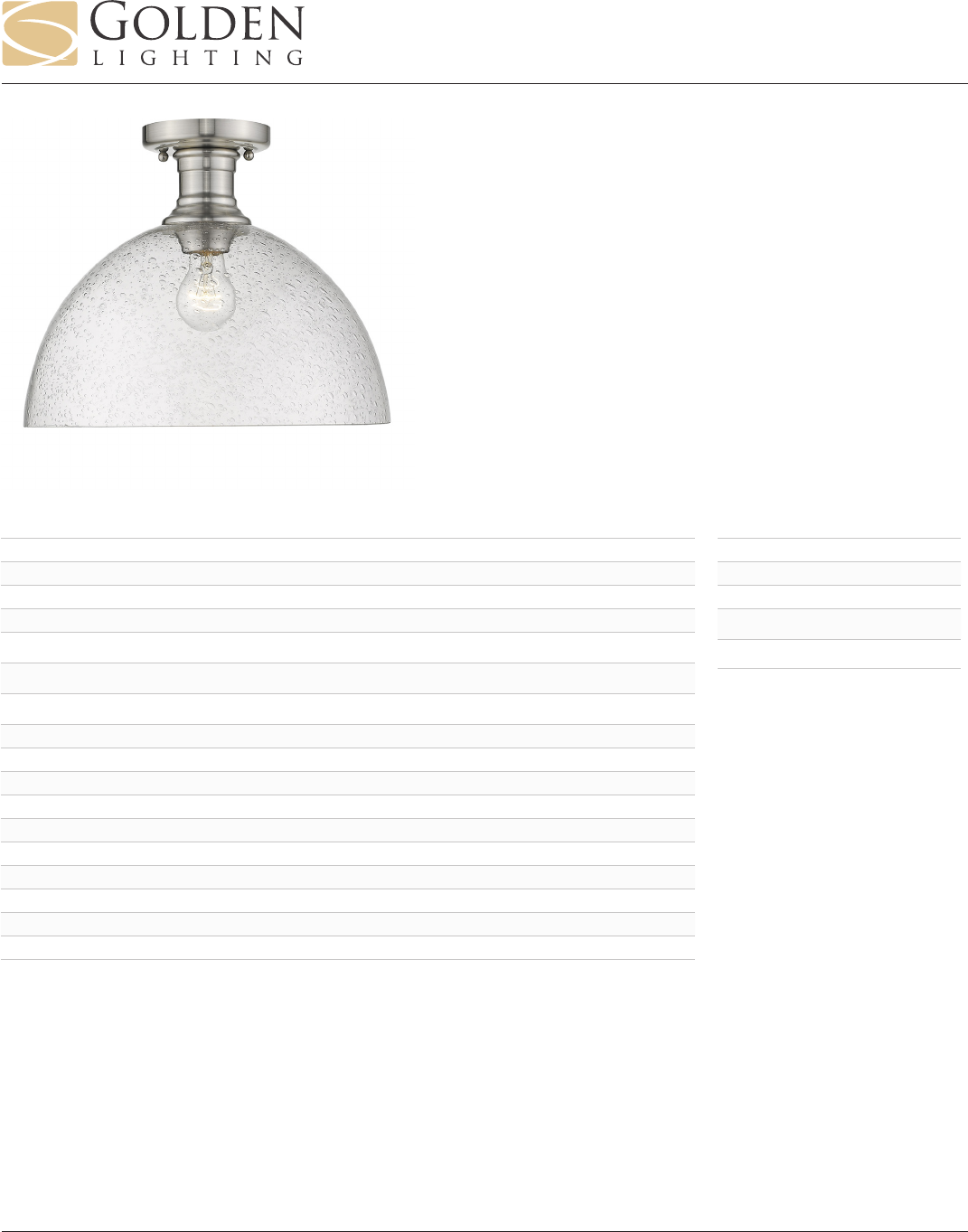 without prior notice. Golden Lighting products are UL/CUL approved. Unless otherwise noted as pending, Wattages stated are the maximum recommended; however, lower wattages may be used. Bulbs