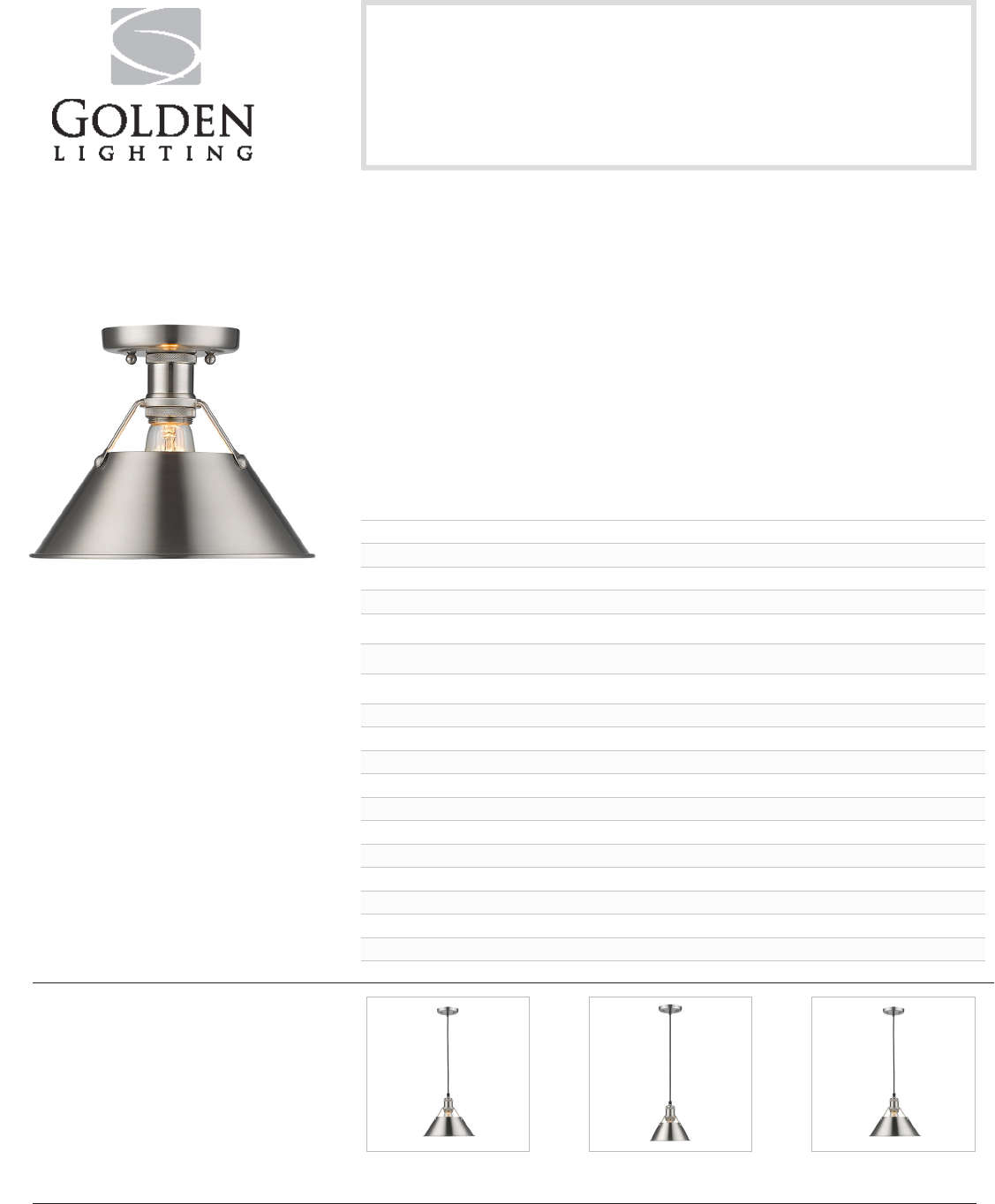 without prior notice. Golden Lighting products are UL/CUL approved. Unless otherwise noted as pending, Wattages stated are the maximum recommended; however, lower wattages may be used. Bulbs are not