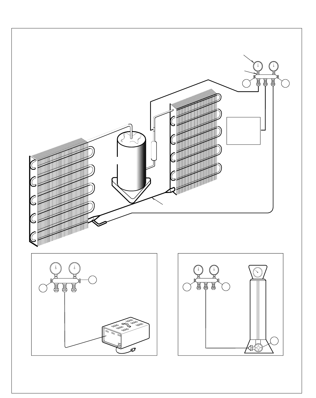 Equipment needed: Vacuum pump, charging cylinder, manifold gauge, brazing equipment, pinch-off tool capable