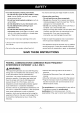 IMPORTANT SAFETY INSTRUCTIONS The safety instructions below will tell you how to use your oven and avoid harm to yourself or damage to your oven. WARN ING- -- To reduce the risk of burns, • Suitable for use above both gas and electric cooking equipment 36 inches wide or less. electric shock, fire, injury to persons, or exposure to excessive microwave energy. • Read all the instructions • Do not use this oven for commercial It is made for household use only. before using your oven.