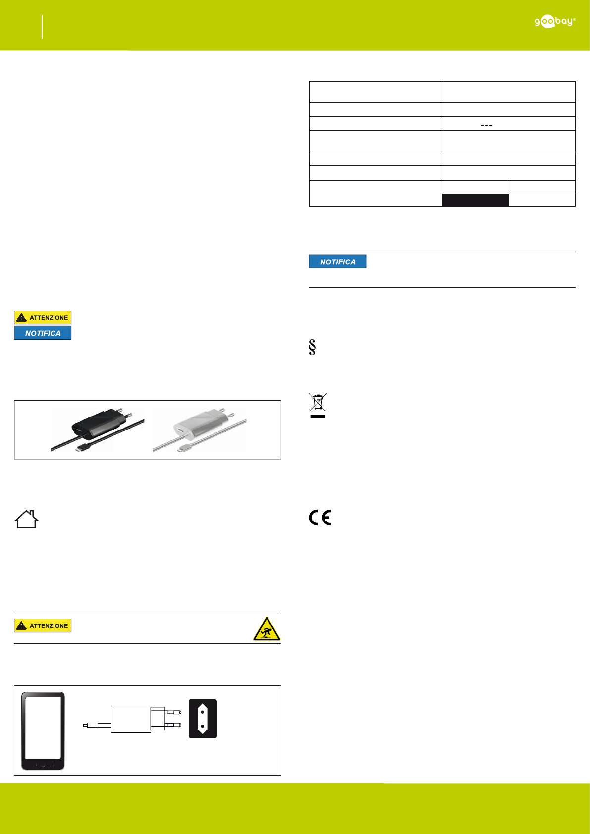 Ingresso 100-240 V~, 50/60 Hz, 0.4 A max.