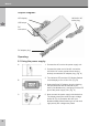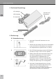 Manual 5 Graphic Diagram: LCD display USB output 100-240 V AC mains plug DC connection DC adaptor plug 6 Operating: 6.1 Using the power supply: A 1. Connect the AC cord to the power supply unit. 2. Connect the other end of the AC cord with a 100-240 V AC mains socket without h aving already connected a DC adaptor plug. (Fig. A) B 3. The indicator LED and the LCD display flashes on and displays 15 to 15.6 V DC. (Fig. B) 4.