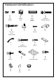 Hardware Identification 33x 33x 36x 5x A B C D CAM SCREW HIDDEN CAM WOOD DOWEL 8X30mm M6x25mm MACHINE SCREW 8x 6x 36x 24x E F G H #10*1-1/2 " FLAT HEAD SCREW 3/4"NAIL 2x 4x 8x 4x J K L M4x22mm MACHINE SCREW #6*1/2 " I 8x 4x 6x 8x M N O P APPLIQUE CARD #8*1/2 " #10*9/16 " 4x 2x 2x Q R S Ø10