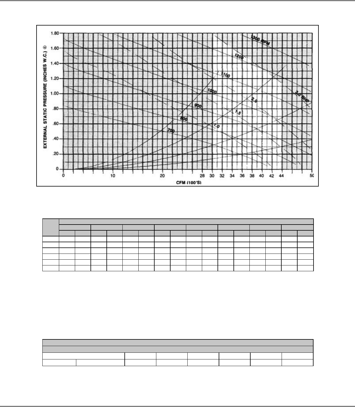 Table includes all internal pressure drops including cabinet losses. See Pressure Drops table that must be considered as part of