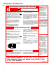 IMPORTANT INFORMATION FOR YOUR SAFETY READ BEFORE OPERATING WARNING: If you do not follow these instructions explosion may result causing property damage, personal injury or loss of life. LIRE AVANT DE METTRE EN MARCHELIRE AVERTISSEMENT: Quiconque ne respecte pas á la lettre les instructions dans le présent manuel risque de déclecher un incendie ou une explosion entraînant des dammages matériels, des lésions corporelles ou la perte de vies humaines. A. This appliance does not have a pilot.