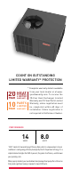 COUNT ON OUTSTANDING LIMITED WARRANTY* PROTECTION * Complete warranty details available from your local dealer or at www. EXCHANGER goodmanmfg.com. To receive the LIMITED YEAR WARRANTY * 20-Year Heat Exchanger Limited Warranty and 10-Year Parts Limited PARTS Warranty, online registration must LIMITED be completed within 60 days of YEAR WARRANTY * installation. Online registration is not required in California or Quebec. 20 HEAT 10 PERFORMANCE 14 SEER 8.