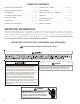 TABLE OF CONTENTS IMPORTANT INFORMATION ...................... 2-4 OPERATIONAL CHECKS ...................... 49 - 51 PRODUCT IDENTIFICATION .................... 5 - 8 MAINTENANCE ...................................... 52 ACCESSORIES ................................... 9 - 11 SERVICING TABLE OF CONTENTS ................ 53 LIGHTING INSTRUCTIONS ......................... 12 SERVICING ..................................... 54 - 62 PRODUCT DESIGN ............................ 13 - 24 TROUBLESHOOTING ....