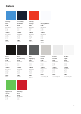 Colors Primary Secondary Tertiary - Blue Dark Blue Orange Very lightblue RGB #2095F3 RGB #151F39 RGB #EE4623 RGB #F6F9FB R: 32 G: 149 B: 243 R: 21 G: 31 B: 57 R: 238 G: 70 B: 35 R: 246 G: 249 B: 251 CMYK #0093D7 CMYK #444E69 CMYK #F74319 CMYK #F6F9FB C: 78% M: 29% Y: 0% K: 0% C: 79% M: 67% Y: 38% K: 22% C: 0% M: 88% Y: 100% K: 0% C: 2% M: 0% Y: 0% K: 2% PMS 299 U PMS 289 U PMS 172 U PMS Base Base Base Border Border Border Black Default/Grey Lightgrey Hard Default Ligh