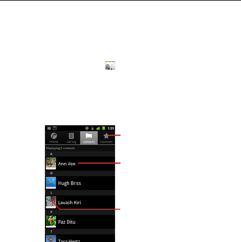 The Favorites tab lists the contacts you’ve added to the list (see “Adding a contact