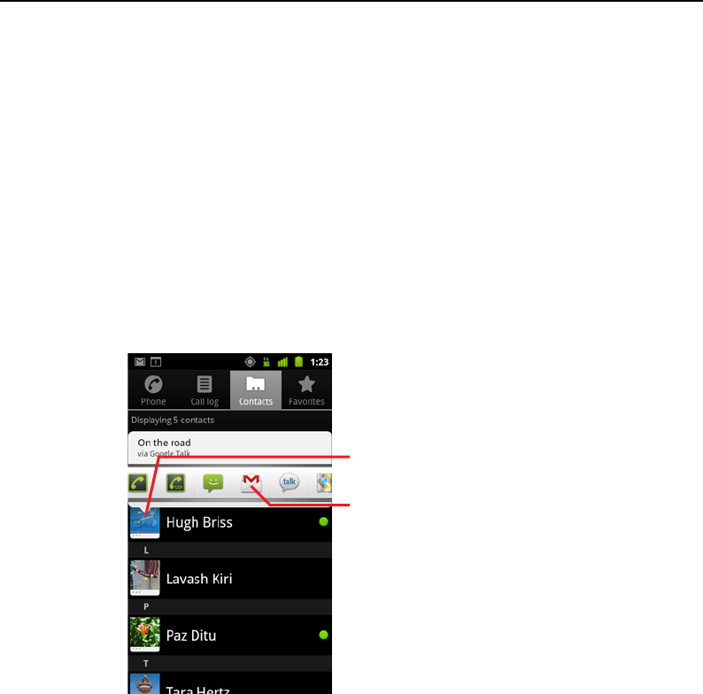1 Touch a contact’s picture to open Quick Contact for Android.