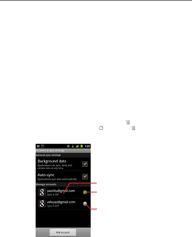 synchronize for each account. Some applications, such as Gmail and Calendar, have