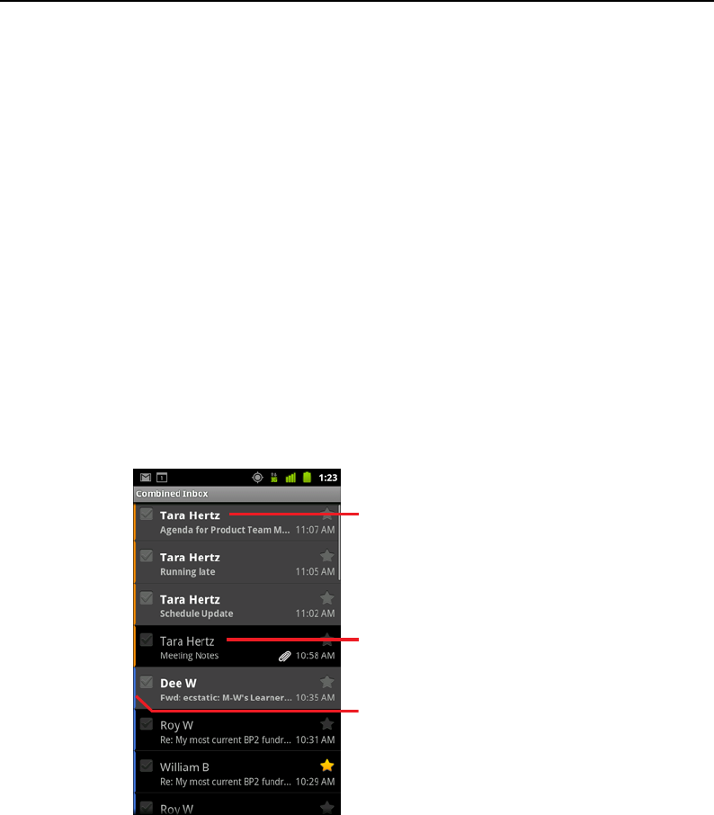 messages at the bottom of the list of email. For Exchange ActiveSync accounts, you